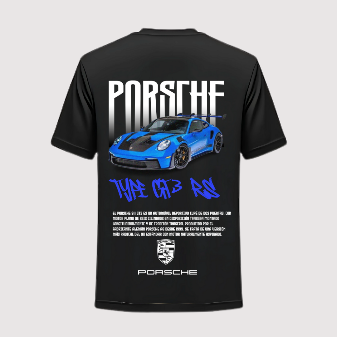Elegancia en azul, potencia sin límites. Esta playera del Porsche GT3 RS rinde homenaje a un ícono de las pistas con un look que impone dentro y fuera del asfalto.