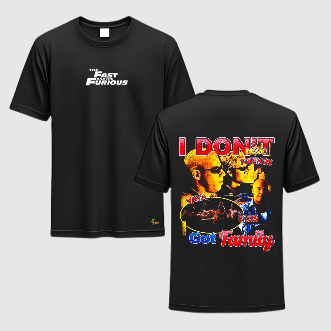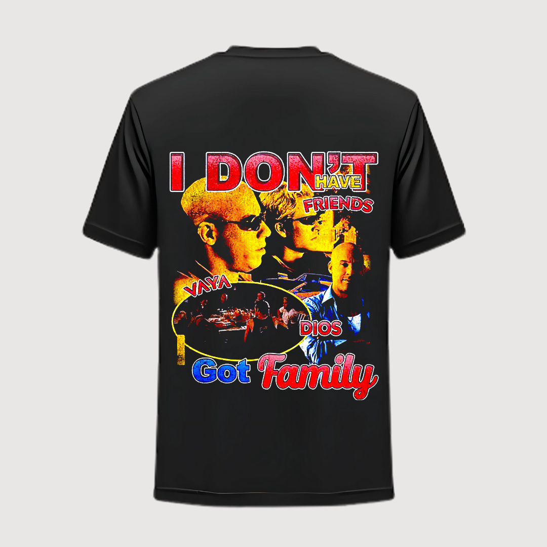 Para los que viven a cuarto de milla y saben que la lealtad vale más que la velocidad. ‘I don’t have friends, I got family’ — una playera que dice todo sin decir mucho.